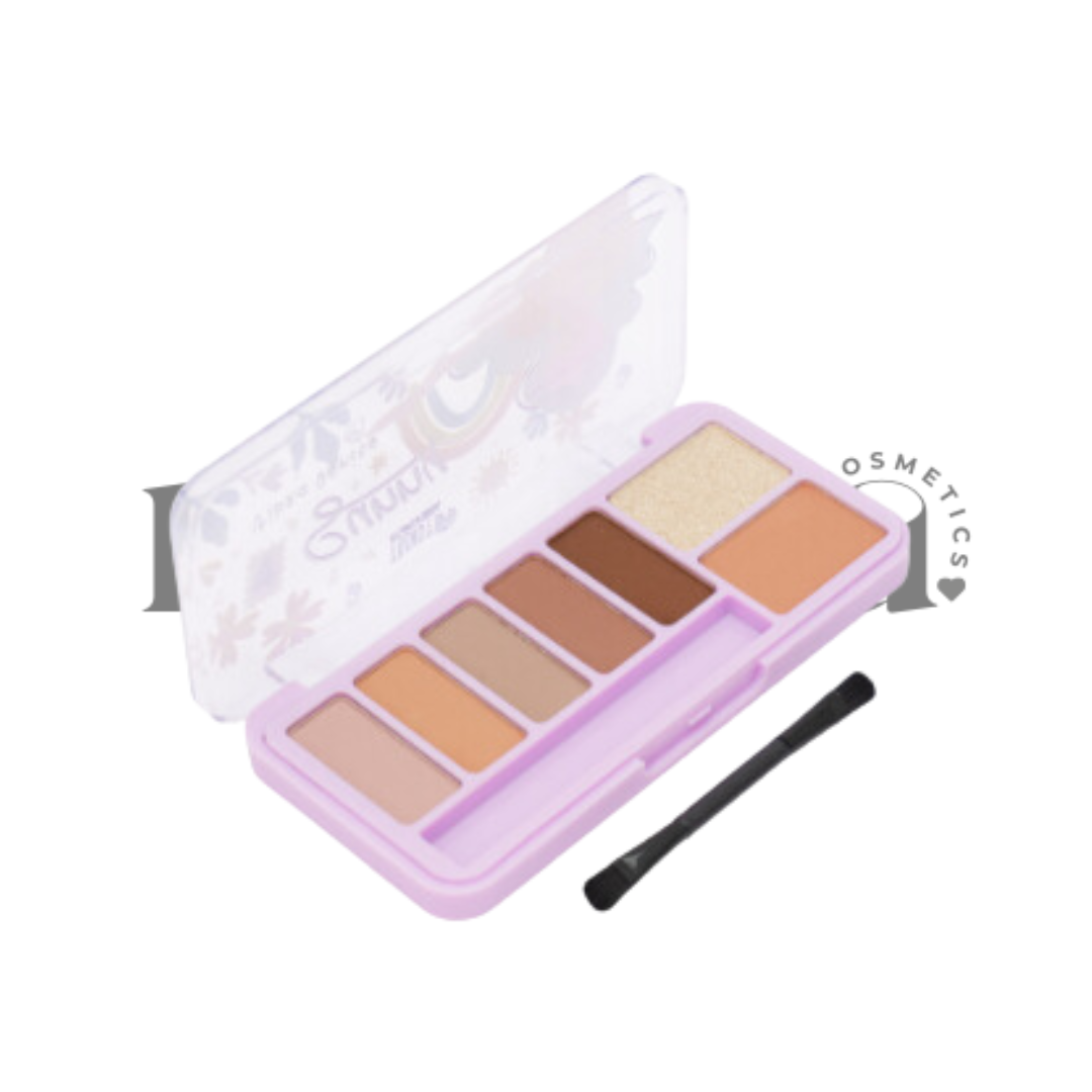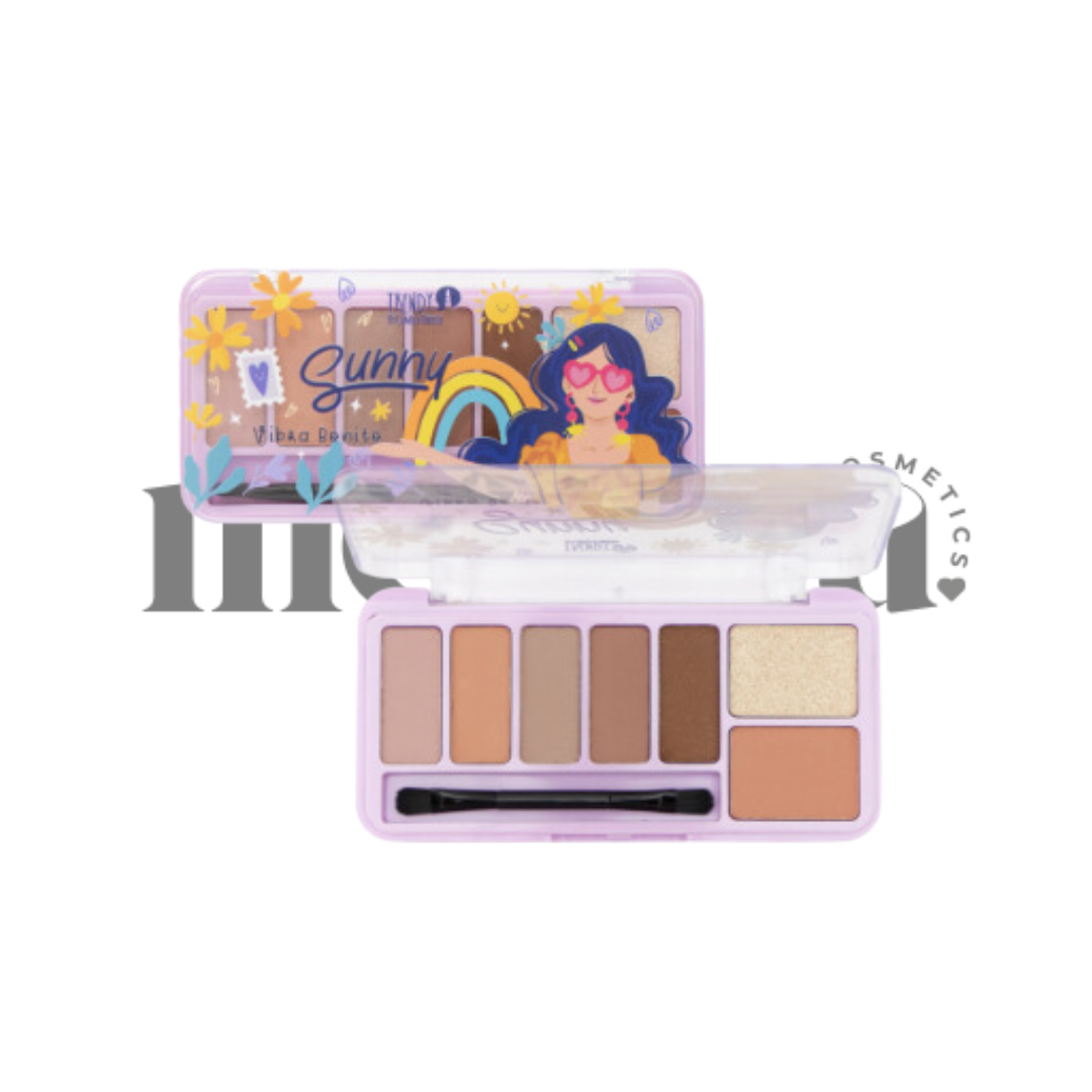 - 7 tonos de sombras: 5 tonos mate, 1 tono café mate con pequeñas escarchitas doradas y 1 tono satinado.